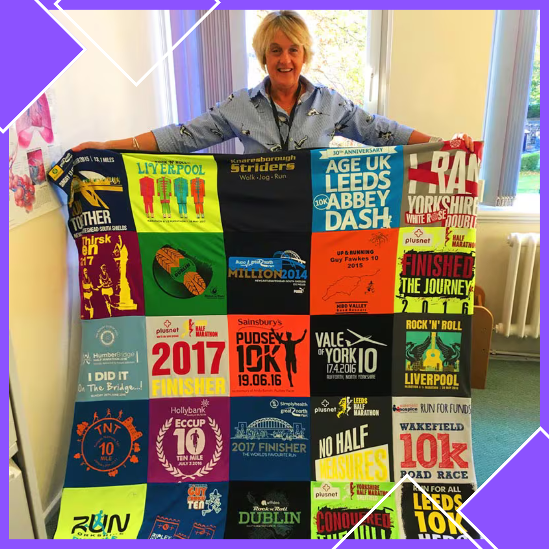 “How AMAZING is my new blanket from Too Many T-Shirts?! ❤ I sent all my tees a way in the post and had this beauty returned to me today! There's a thousand stories in this blanket from my first event where I finished last,