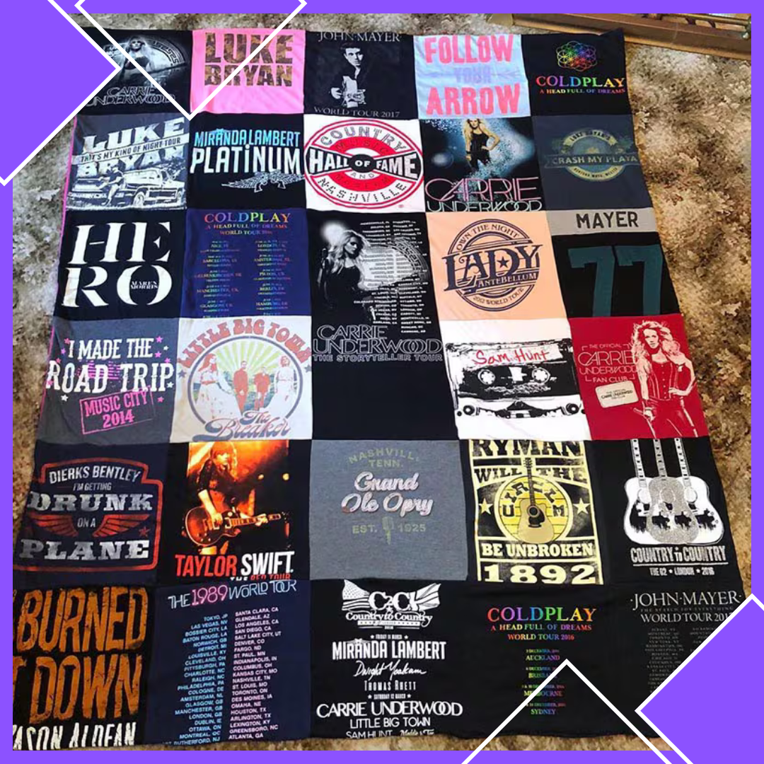 We specialise in creating beautiful, handmade "memory blankets" right here in the UK. These unique blankets are crafted using your cherished t-shirts, transforming them into a meaningful and lasting keepsake. Unlike traditional quilting methods, we offer a more affordable and personalised alternative, allowing you to preserve your memories in a practical and visually stunning way. Whether it's a collection of t-shirts from special events, sports teams, holidays, or any other significant moments, we help turn them into a custom-made blanket that you'll treasure for years to come.